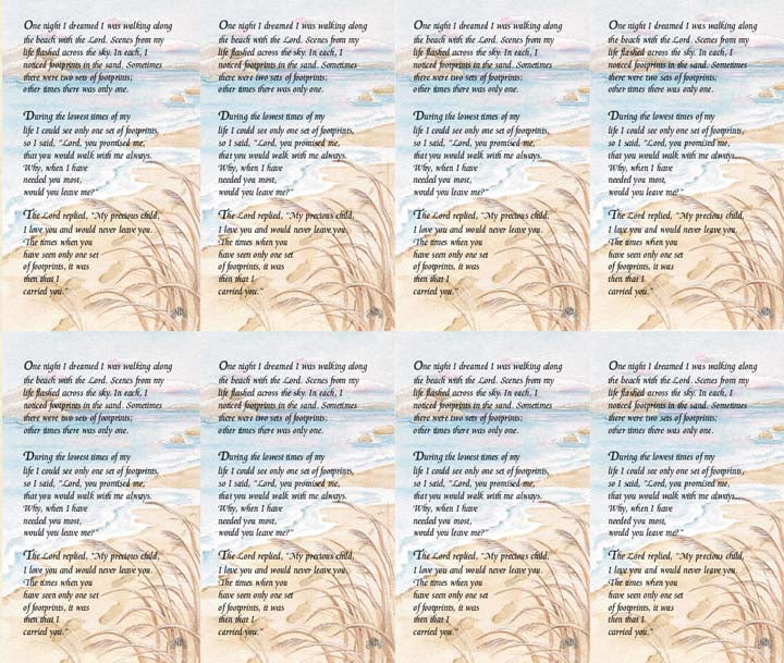 Footprints Prayer Cards 8-Up