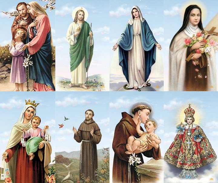 Prayer Card: Beautifully detailed color images of Santos on micro-perforated cards.